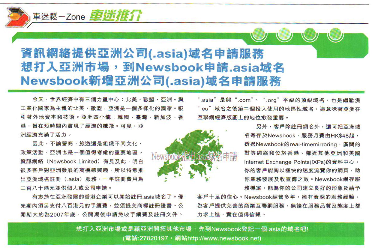 Newsbook Limited is the largest web hosting providers and email providers in Hong Kong. Newsbook have email, web hosting, web page design, dedicated servers and server colocation by 11 different idc data centers in Hong Kong and China. In email storage services section, we has web mail, pop3 email and send files etc function. For web hosting has Windows hosting plans and Linux hosting plans etc. Newsbook provides the best ecommerce web hosting at low cost for clients. Newsbook is the best web hosting companies. We have professional php or asp web hosting in Windows servers or Linux servers. You can host your websites in the best hosting companies. For dedicated servers section, Newsbook has Windows dedicated server, Linux dedicated server, server collocation, server rental, dedicated web server, dedicated linux servers, dedicated rent server, co-location etc. Newsbook is the best dedicated server hosting companies. You can host servers in the best dedicated server providers. Newsbook also managed dedicated servers. You can visit our idc data centers in Hong Kong and China. We provide the HK, China, tw, asia, .com, .net, .org domain name registration.